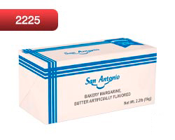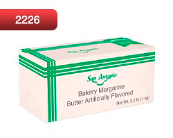 San Antonio Bakery Margarine (Blue)Bakery Margarine, Butter Artificially Flavored Packaging: 2.2 lb Shelf life: 6 months Storage conditions:(Store at room temperature (64.4°F to 68.0°F)) |